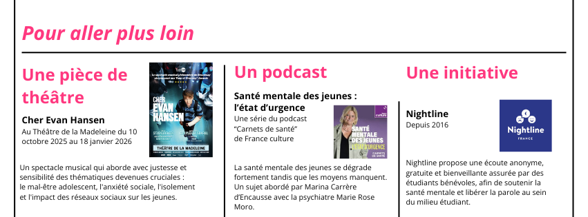 Repères ¤ En 2025, 1 jeune sur 4 souffre de dépression. ¤ 94% des jeunes se disent inquiets pour au moins un enjeu majeur : leur avenir personnel (68%), l’actualité internationale (83%) ou la crise environnementale (77%). ¤ Seuls 37% des jeunes âgés de 18 à 24 ans déclarent qu’il est facile pour eux de parler de leurs problèmes de santé mentale (IPSOS-CESI, 2025). |